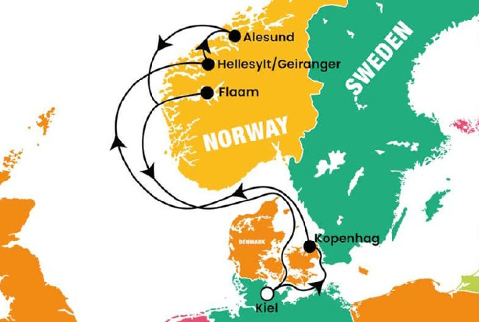 Kiel - Kopenhag - Hellesylt / Geiranger - Alesund - Flaam - Kiel
